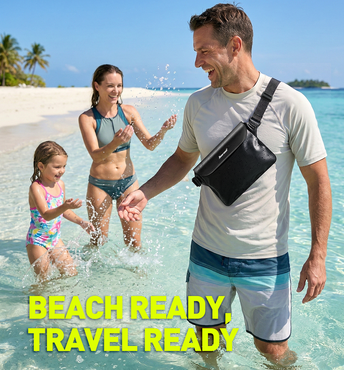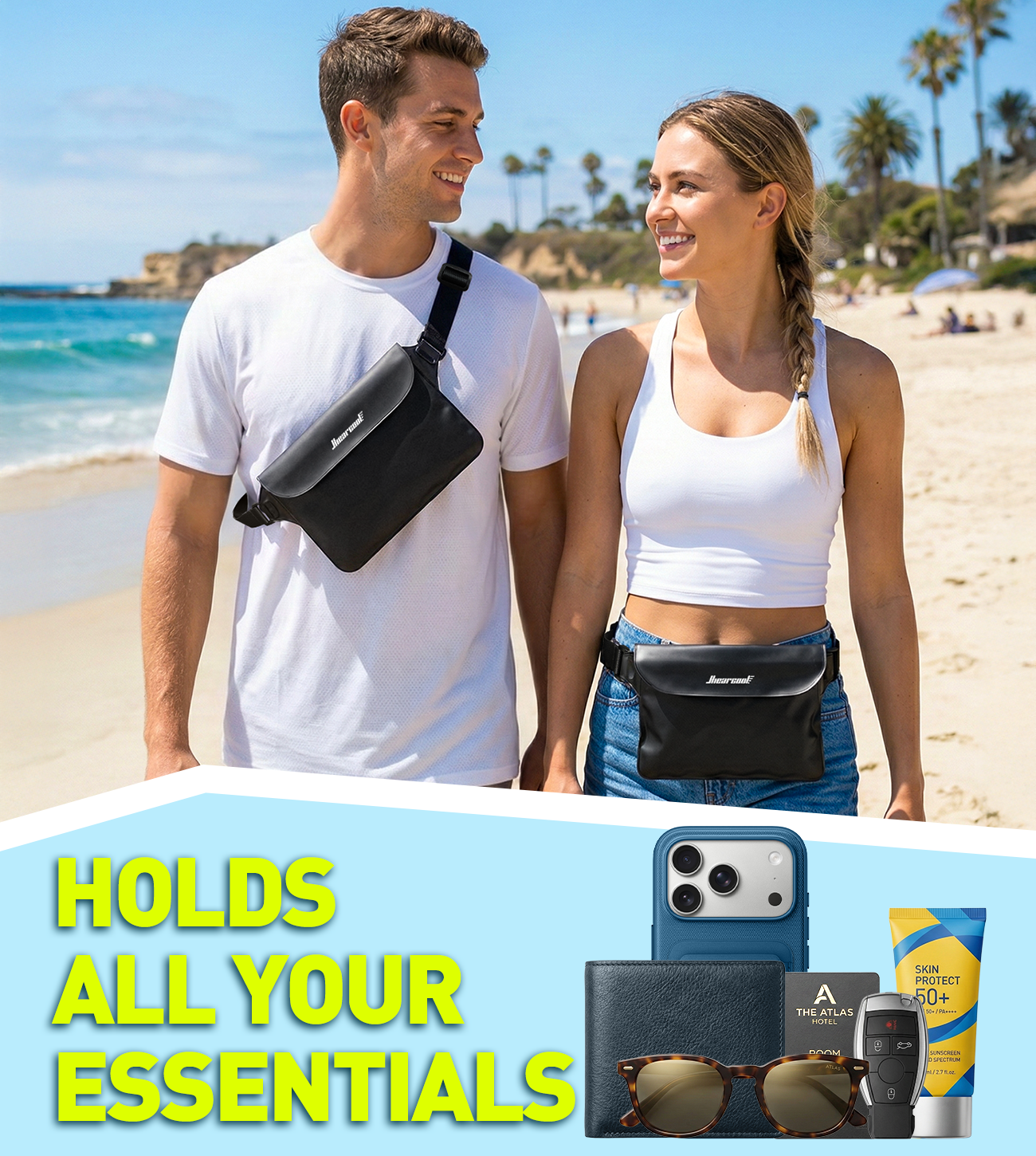 WATERPROOF DRY BAG PROTECTION. This waterproof fanny pack dry bag helps protect your phone, cash, and valuables from splashes, sand, and dirt. Perfect waterproof phone pouch for beach trips, swimming pools, water parks, kayaking, boating, and cruise vacations.